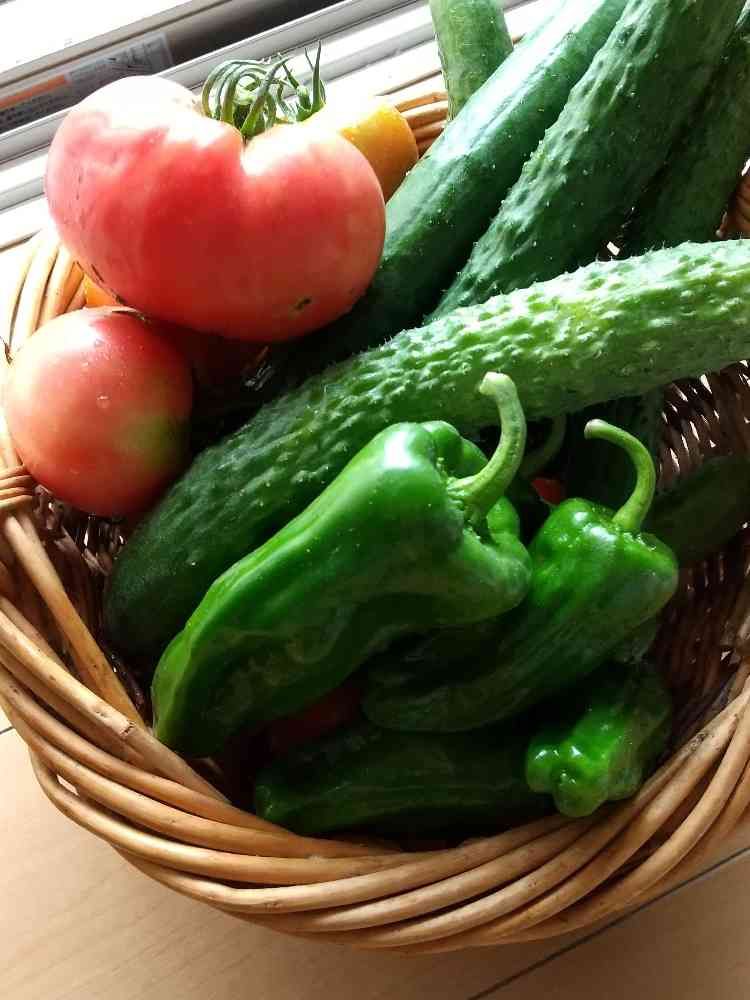 小雨の中の収穫です!🍅トマトが大きく成長しました🎵日本のとまとは、甘くて美味しいです!オリーブオイルかけて食べたいです😊