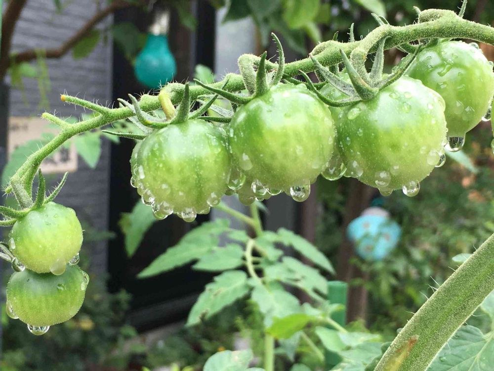 まだ赤くなってないミニトマトもグリーンがみずみずしくていいね✨👍