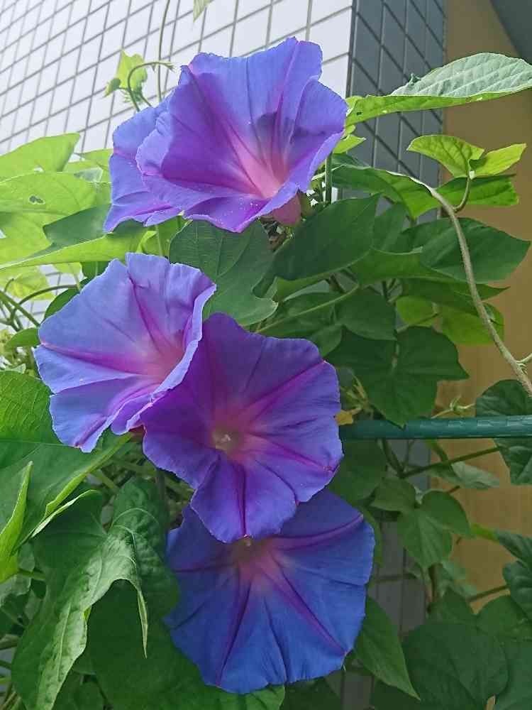 大きな朝顔咲いてました💜💜この色合いが綺麗です