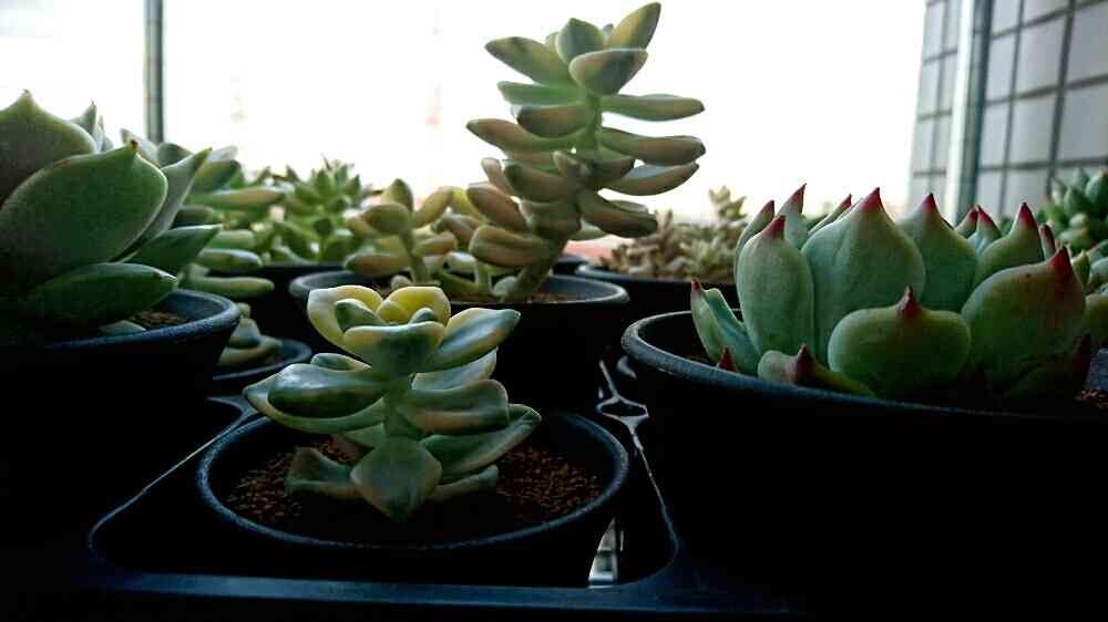 横から撮影。ティテュバンス錦、チワワエンシス、チラッとローラ。😁🎵