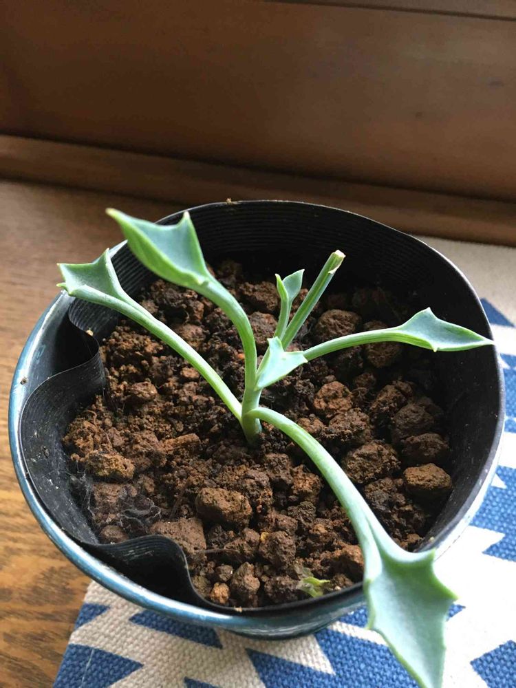 雨続きで日照不足💦 徒長した上矢尻の鋭敏さが無い。なのに鉢から溢れそうだったので、思い切って株を一つ分けました。