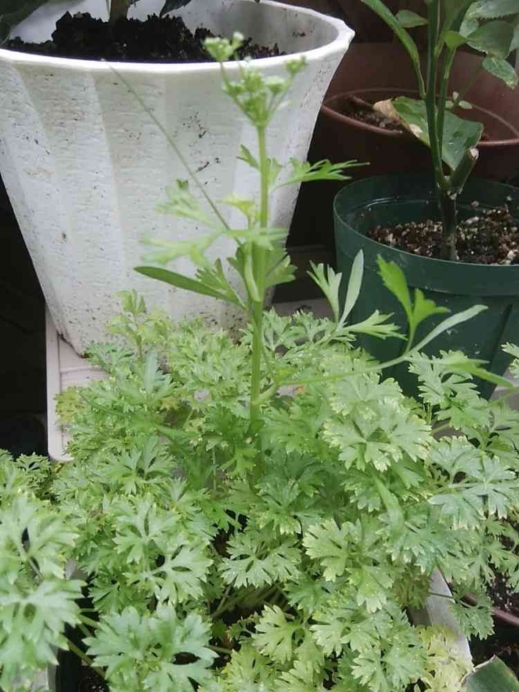 いつの間にかパセリのとうがたってました。かわいいけど、栄養もってかれるので、切ります。ごめん。