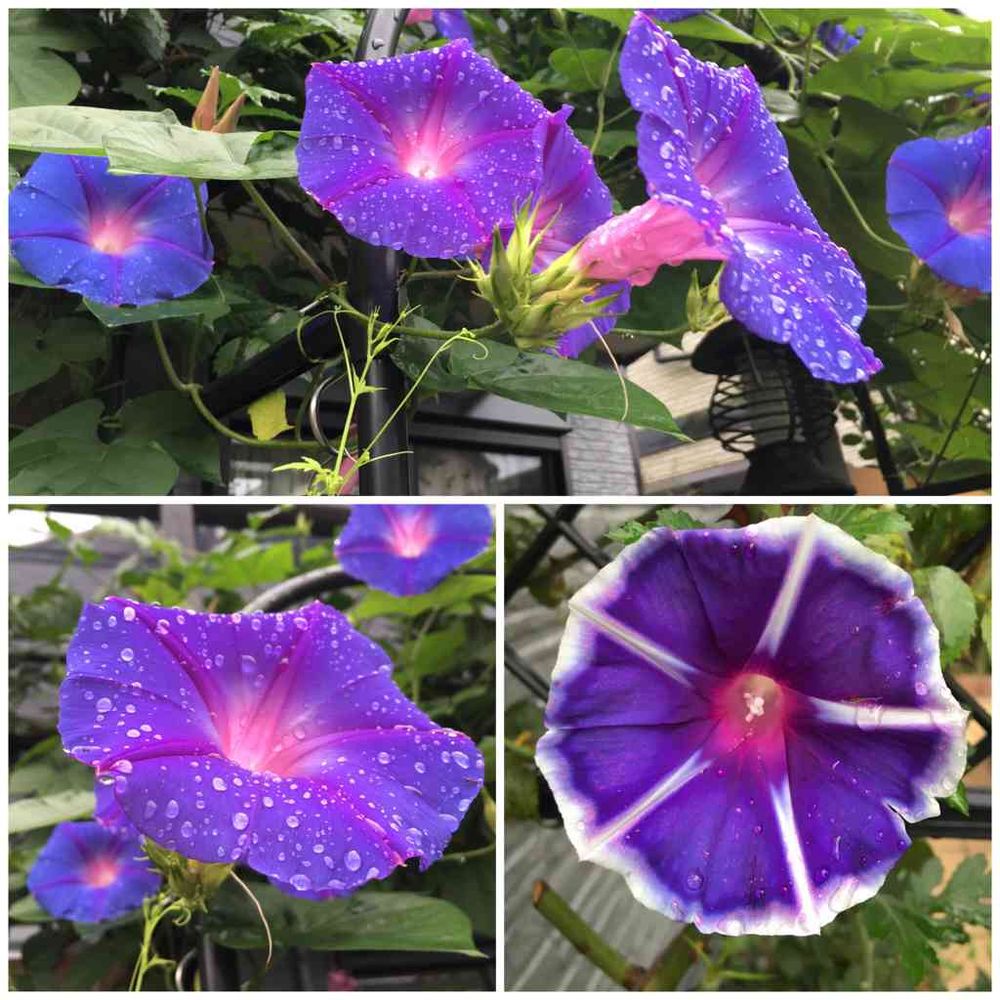 雨を弾いて撥水加工の琉球朝顔😅👍💜