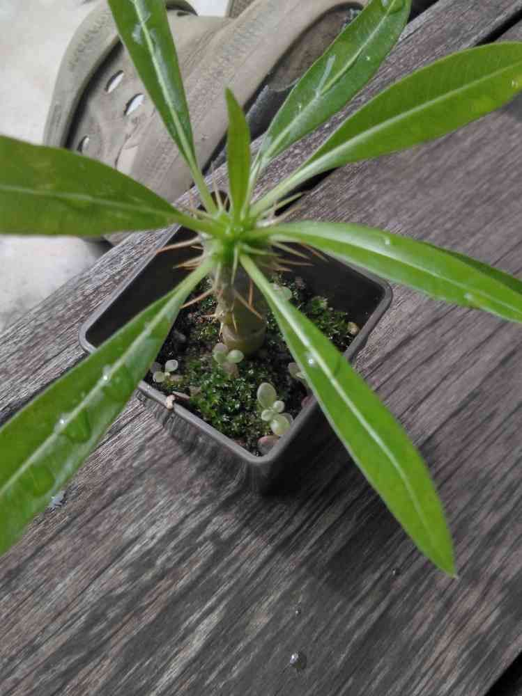 ダイソー産パキポディウム、雨に濡れても元気そう✨