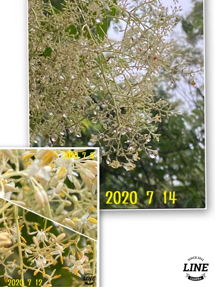 7月8日全体がベージュ色になってやっと少し開花した。蕾が多くて花が見えにくい。