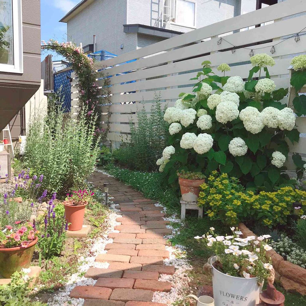 レンガの小路は手作りでしょうか?曲線がとても良く出来映え最高ですね!!