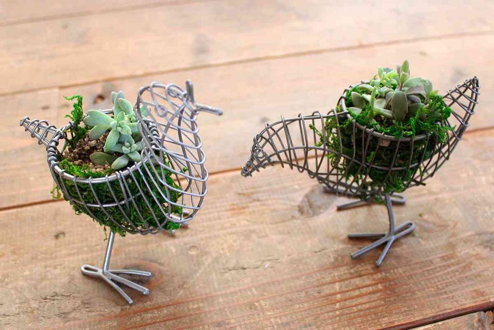 ワイヤーのとりさんに多肉の寄せ植えしてみました。