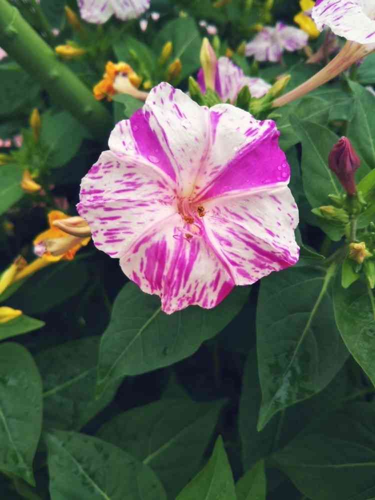 ピンクや黄色はよくみたけど絞りの入るオシロイバナは見たことなかったな…。