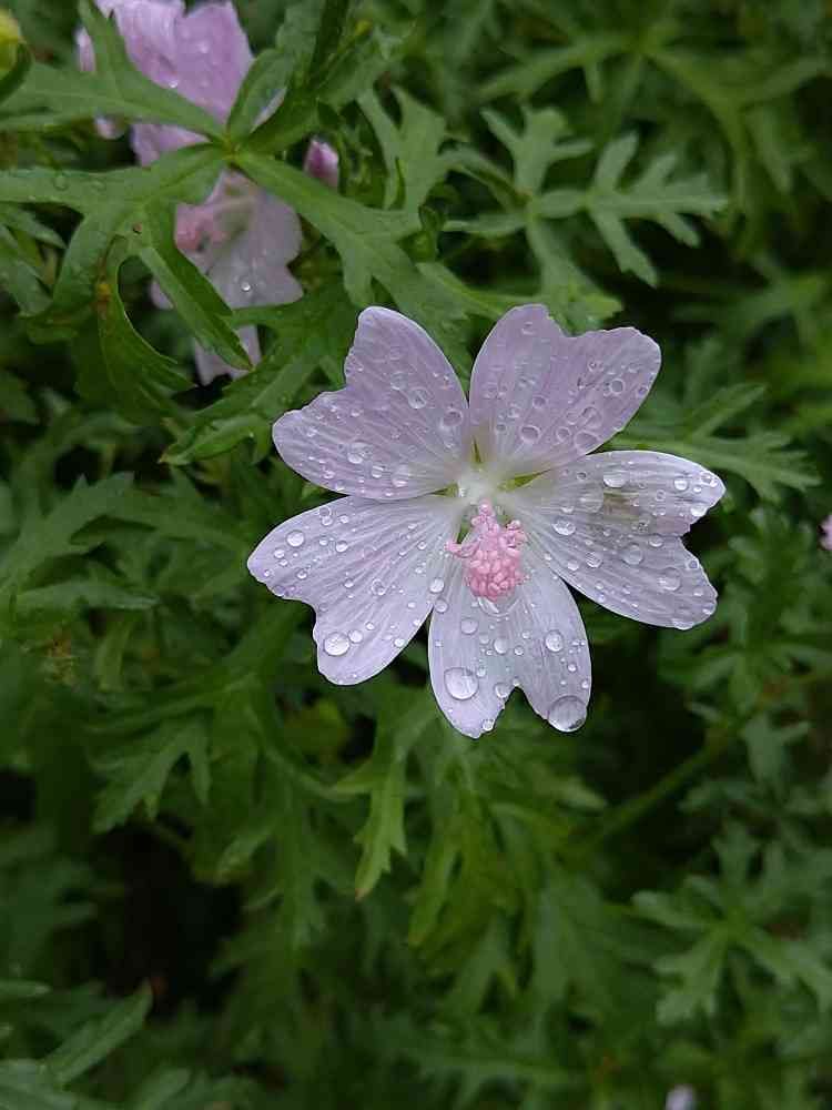 優しいピンク色の🌸ジャコウアオイ🌸が雨☔の中、咲いていました💖