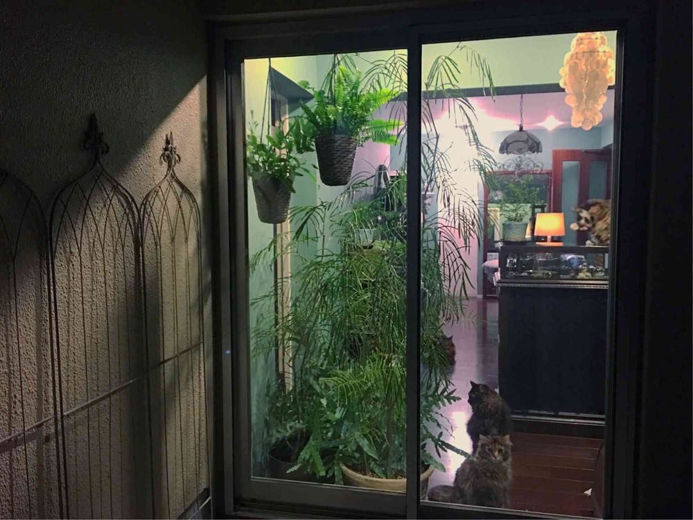 植物もねこちゃんもイッパイで素敵‼でも台の上の子が人面猫ちゃんに見えるのは私だけなのかな?(笑)
