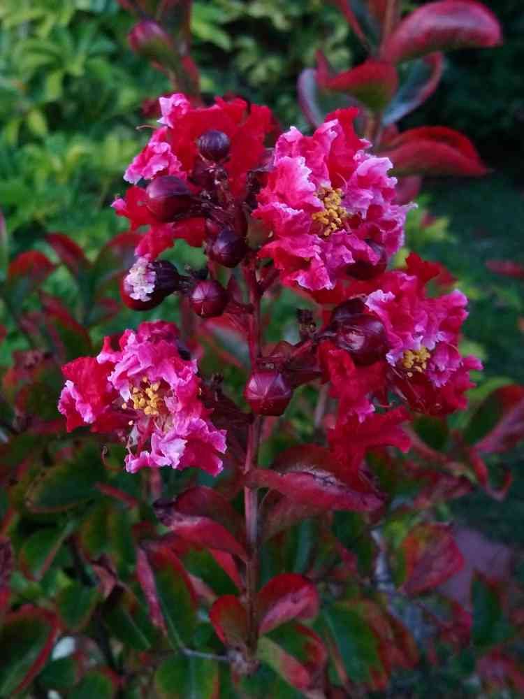 葉っぱまで紅い、我が家のサルスベリさん🤗。