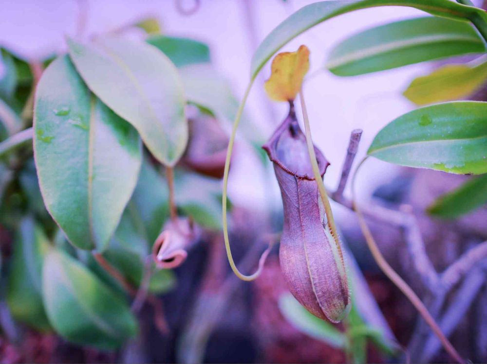 ウツボカズラ属は、葉先から伸びた蔓の先の捕虫袋をつける食虫植物🍃🌿