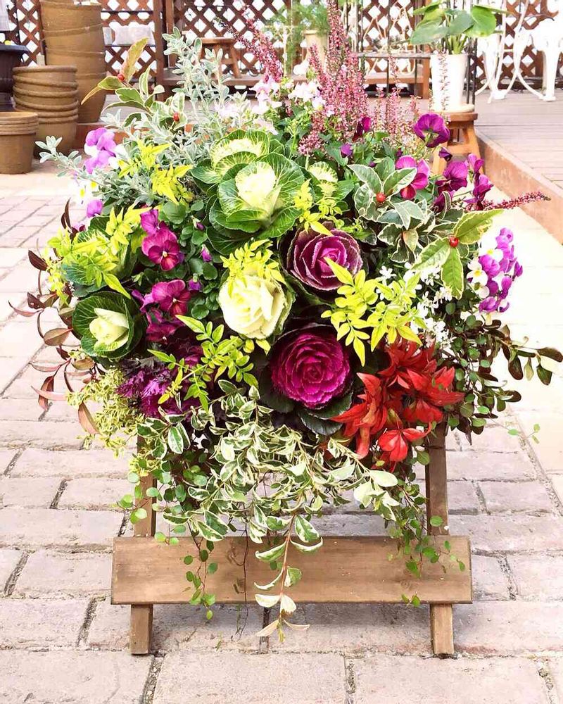 玄関,ハンギングバスケット,葉牡丹•ブラックルシアンの投稿画像
