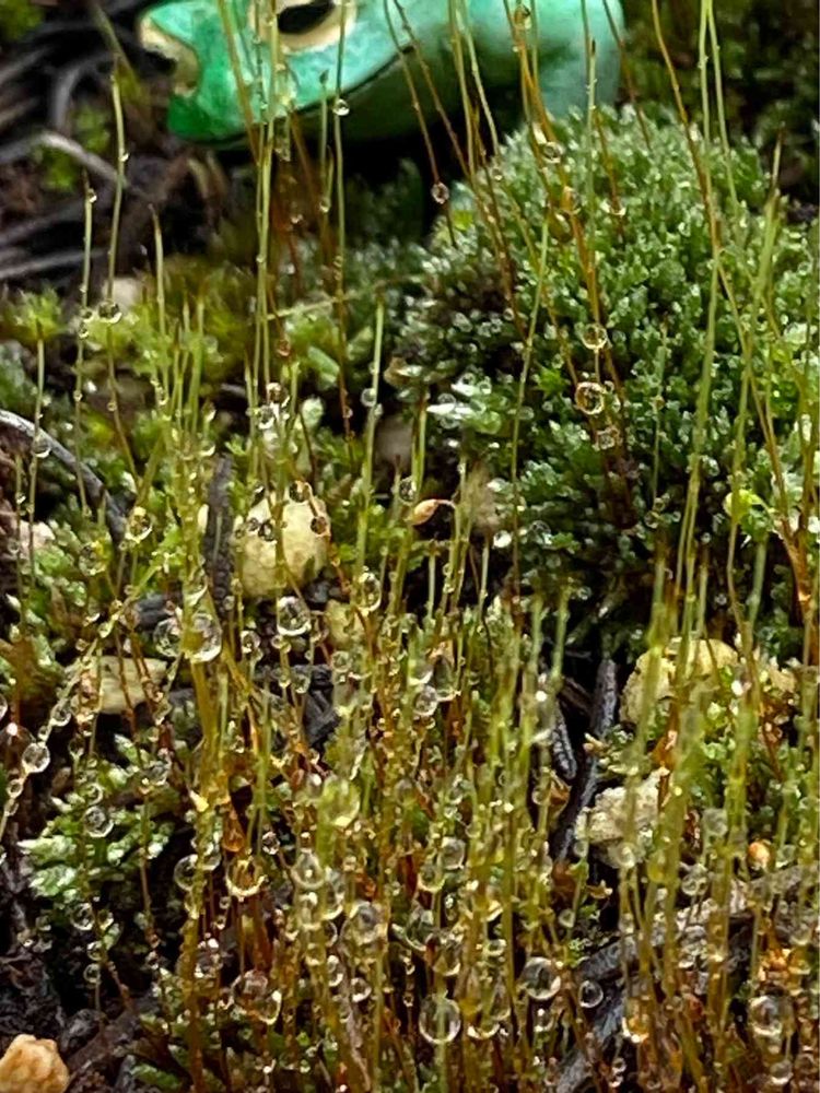 苔の種類なのか直立不動の❓たち、雨の日は意外な美しさを見せてくれる。