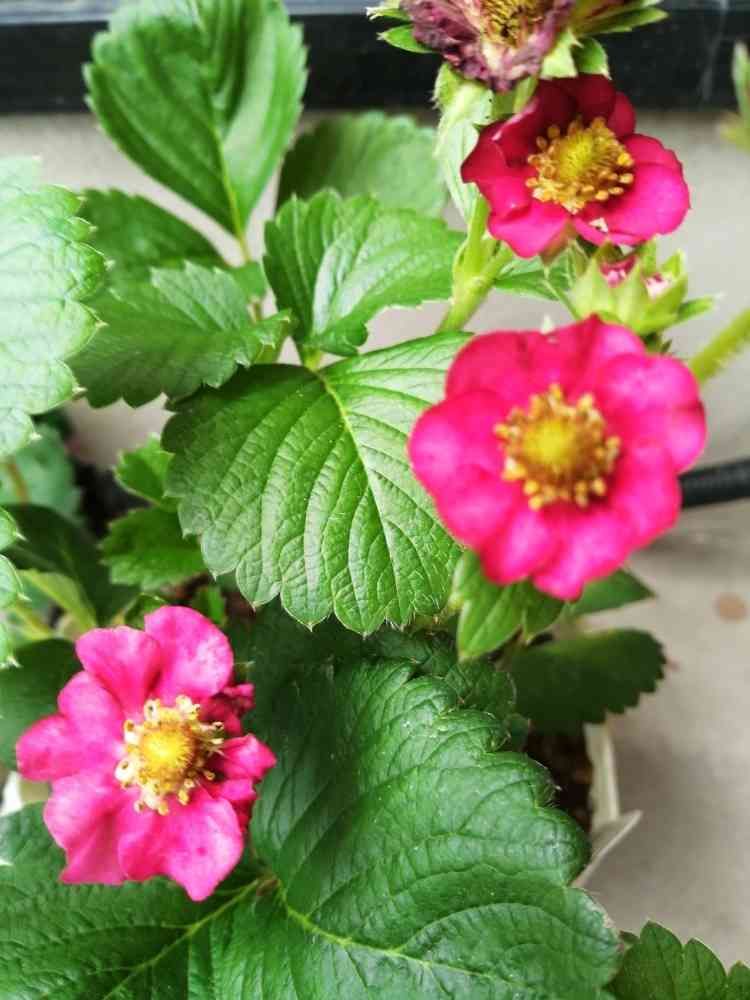 四季なり🍓いちごルビーアン、買ってきました。☔雨に、かからないように、軒先にね。白い花は、よくみます。綿棒で、花粉を、つけますね。食べられる物って、楽しみーー😆