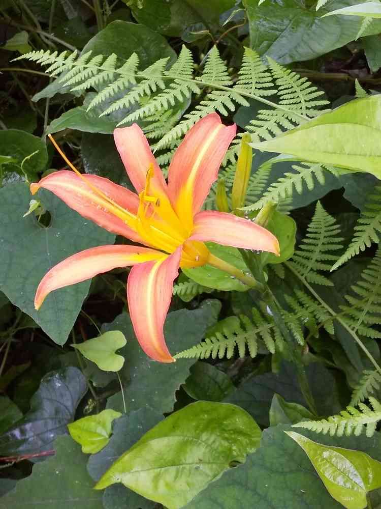 ユリの仲間だと思うのですが、花の中心から伸びている黄色いスジが綺麗で❤️
