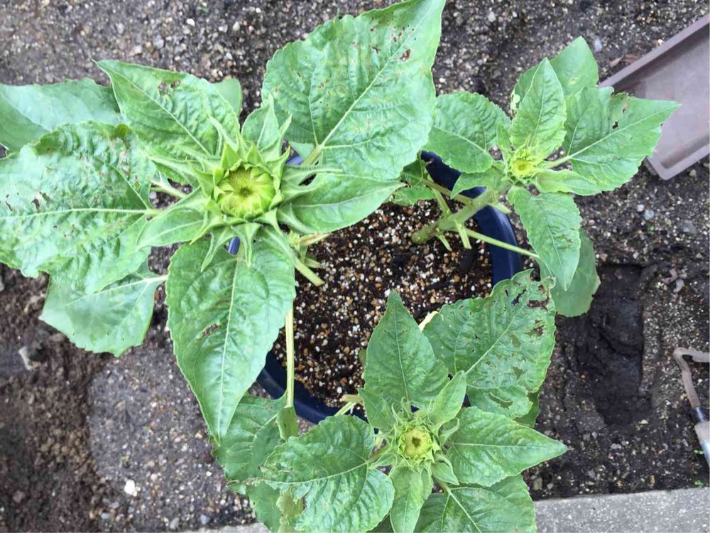 鉢植えの虫食いのミニひまわり〜夏物語🌻
