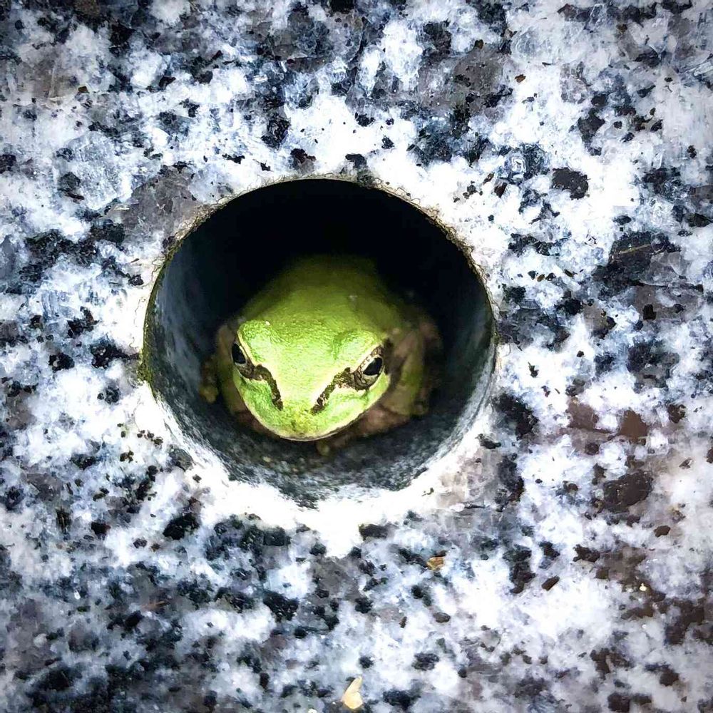 (´▽`*)アハハ お墓掃除へ行ったら小さい雨蛙が隠れてたので思わず…お披露目してみた(笑)