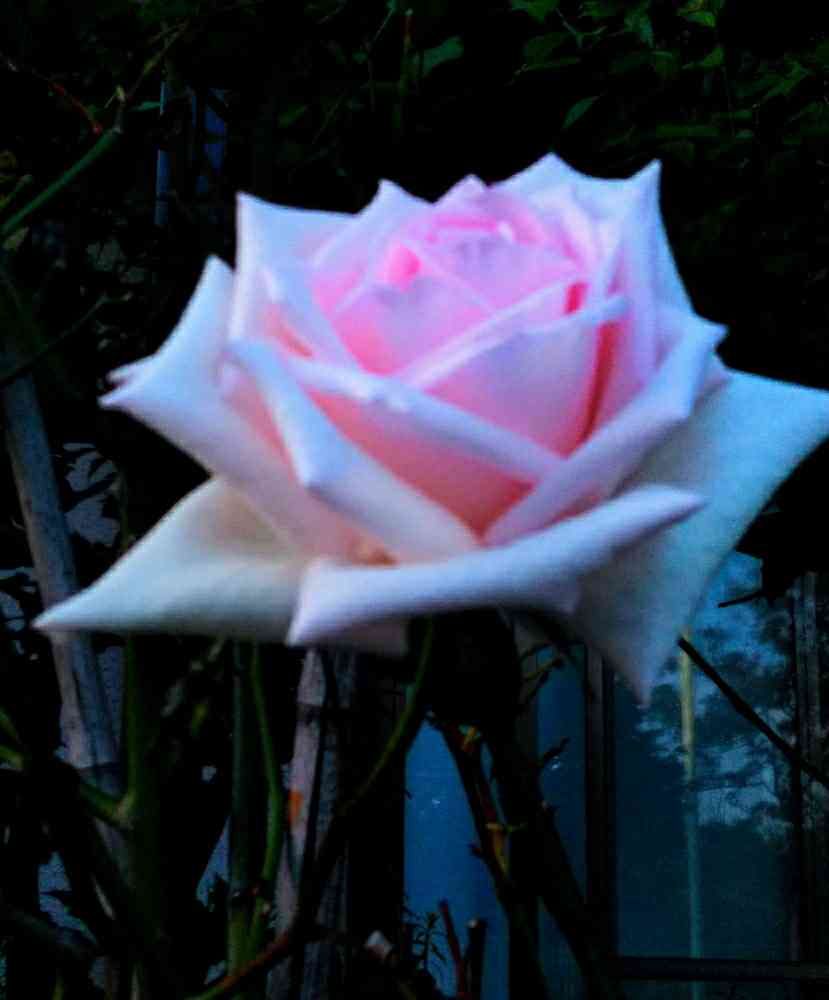 仕事帰りに、通り道のお宅の垣根から、綺麗な薔薇が、顔を出していました。