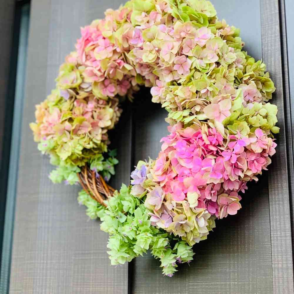 紫陽花やオレガノは、ドライフラワーになっているのですか?あまりに色が綺麗なので、生花のリースかしら?