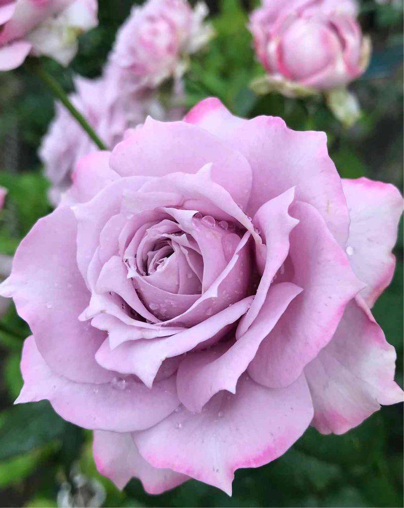 ブルーローズの蕾はローズ色が多く、開くとパープル系になります。