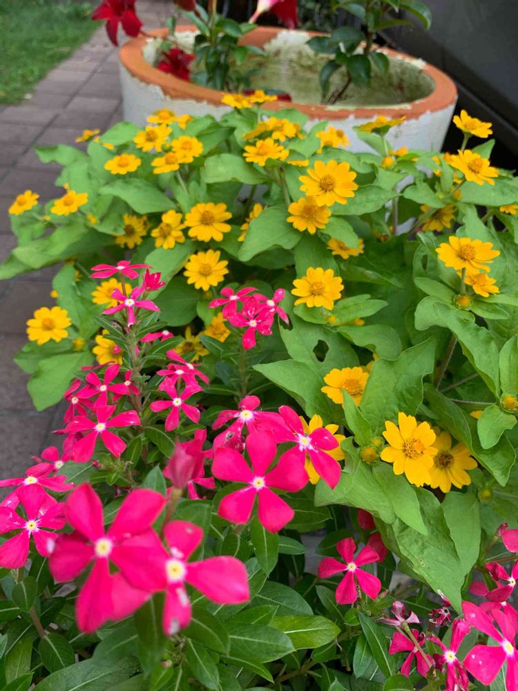 小さな庭,メランポディウム,日々草(にちにちそう)の投稿画像