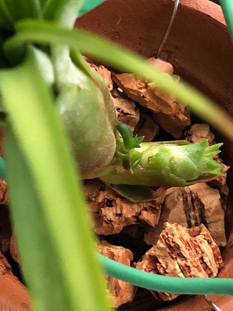 もうダメかと思ったけどなんとか元気な子株ちゃんが出てきてくれた👀始めに出た子株ちゃんは育ちが悪いけど、後からの子は勢いがある😊頑張れ〜🍀