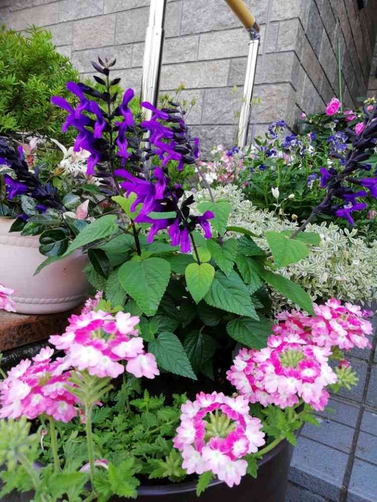 はな♥さんの玄関,スーパーサルビアロックンロールディープパープル,バーベナ エンデュラスケープ ピンクフィズの投稿画像