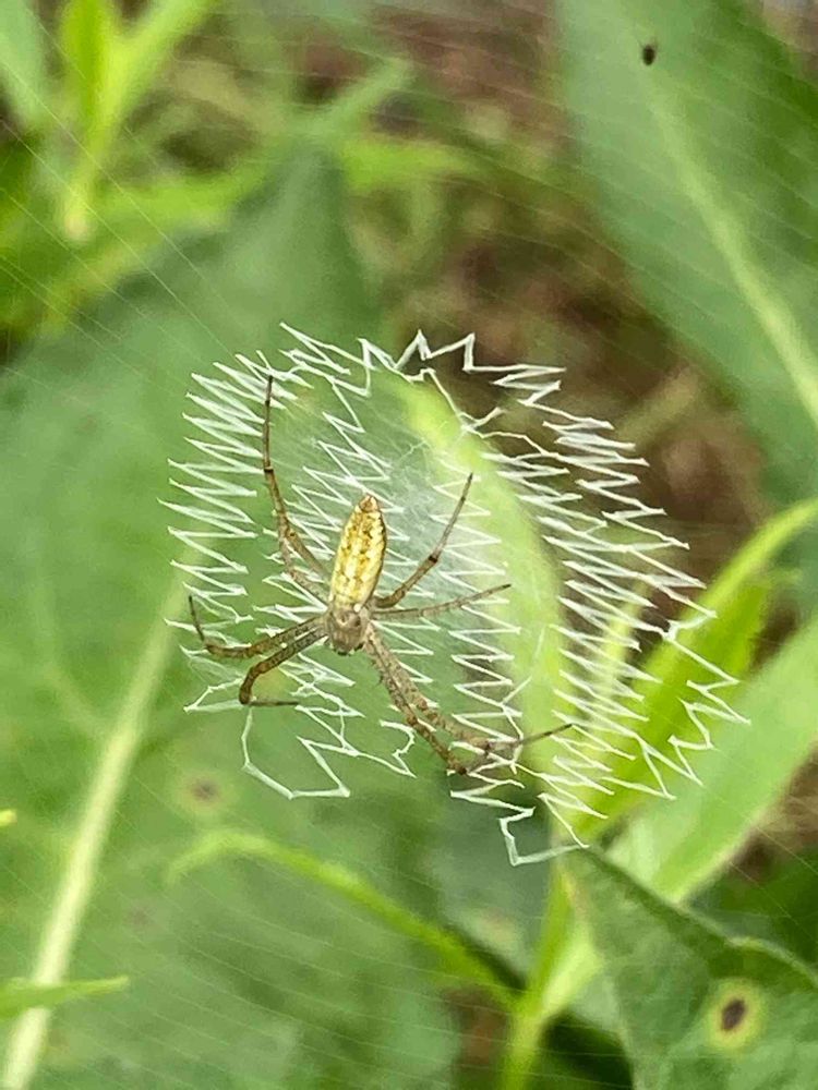 よく見る蜘蛛の巣の上に重ねて張ったんですね。ギザギザが面白いです😲😍