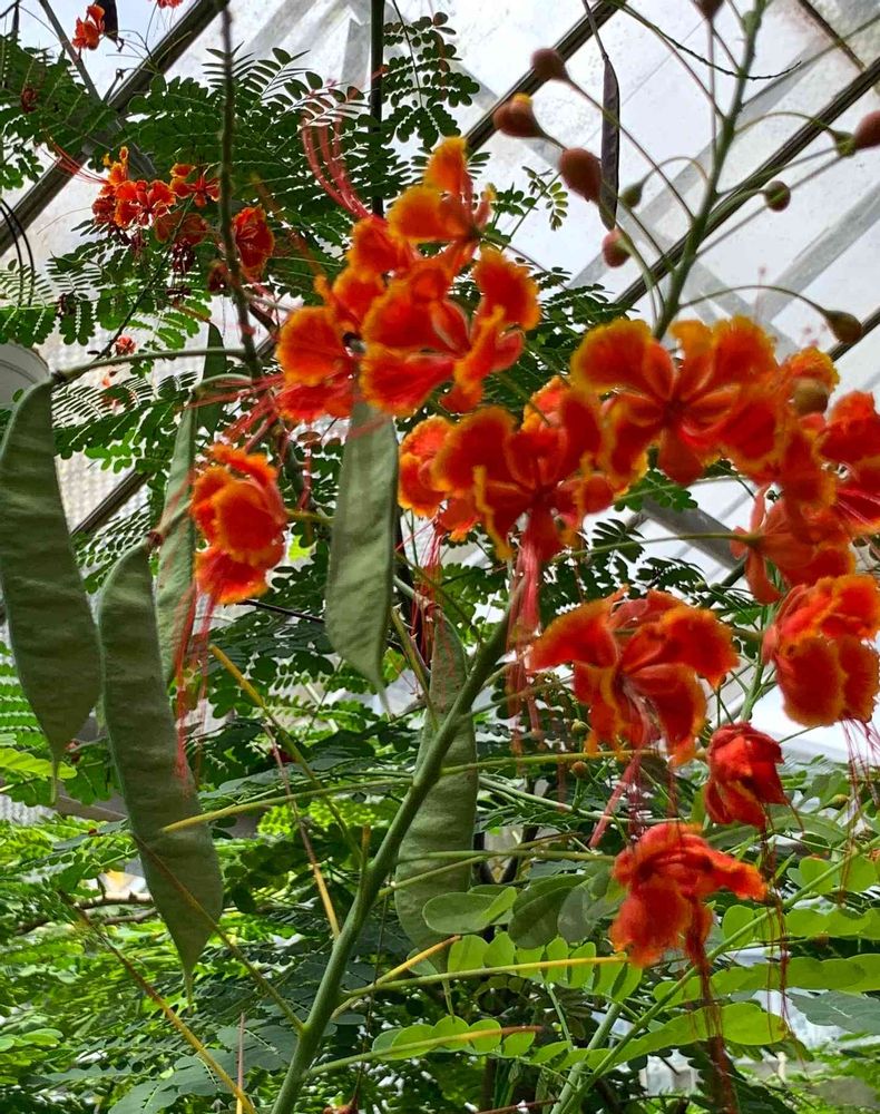 こんばんは🤗私も初めて👀ました😁❣️オオゴチョウ(大胡蝶、黄胡蝶)花色は赤みがかったオレンジ色のものが多く花びらの縁にはフリルのように縮れた黄色い模様が入る。