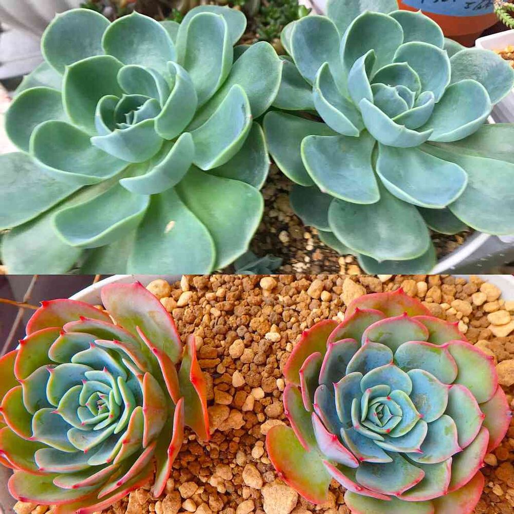 雨曝し、現在が上。どっちも可愛いけど、成長速度は断然雨曝しの方が早そう!