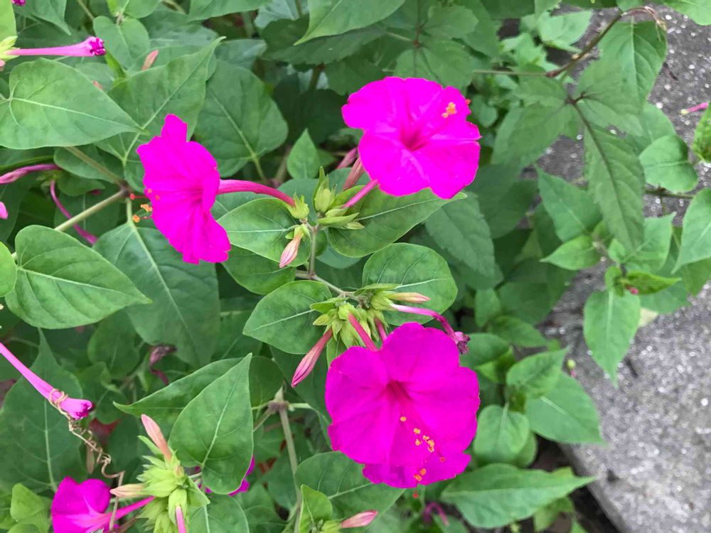 お早うございます。やっぱり、定番のおしろい花ですね。どこか、懐かしくて、インパクトのあるこの色が好きです。今も昔も、子供たちが、種を取りにくるんですね^_^夕方に、ならないと咲かないのが不思議ですね。