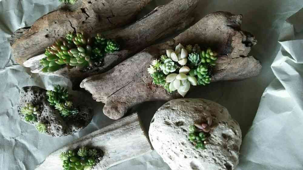ふみうめさんのインテリア,多肉寄せ植え,流木の投稿画像