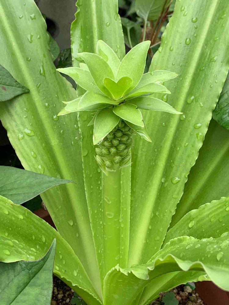 去年タニ友さんに球根を分けてもらったパイナップルリリー。雨の中頑張ってます。