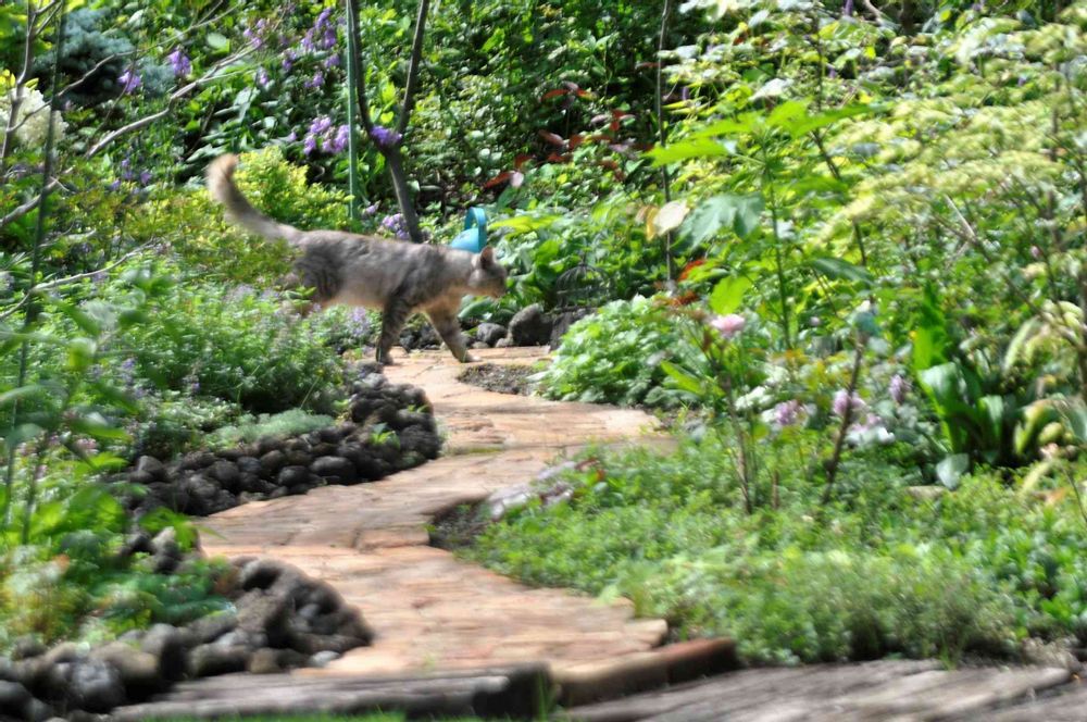 さん こんばんは😃この猫レンガの小道しか歩かないんですよ!😀