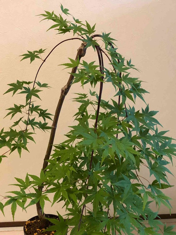 普段は先の方を切って、懸崖に仕上げる見たいですが、自分はそのまま伸ばして枝垂れるこの感じが好き😆