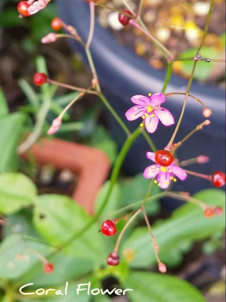 お花の後にできる赤い実が、サンゴの色と似ていることから、コーラルフラワーという英名もあります💖