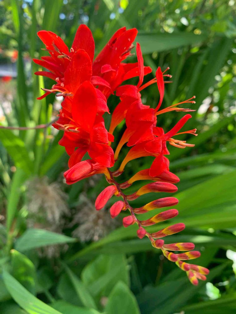 燃えるような緋色のヒメヒオウギズイセン(クロコスミア)が美しいぃぃ❤️❤️