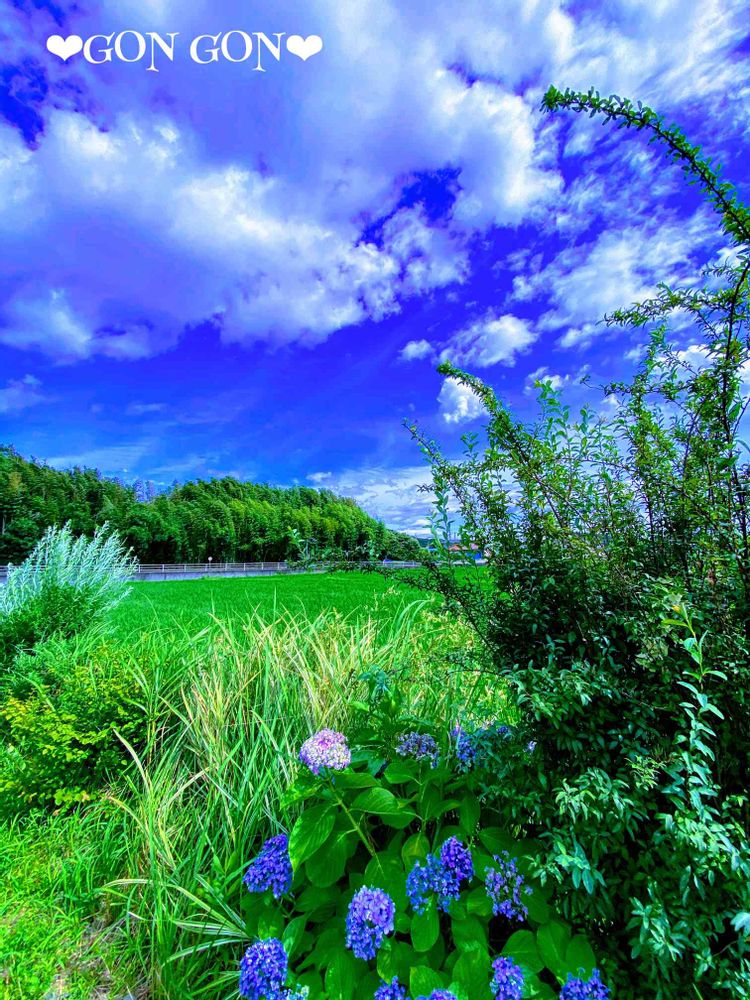 綺麗ですねぇ💕 空の青 森や葉の緑 紫陽花の紫 原色のゴンゴンカラーですね😆