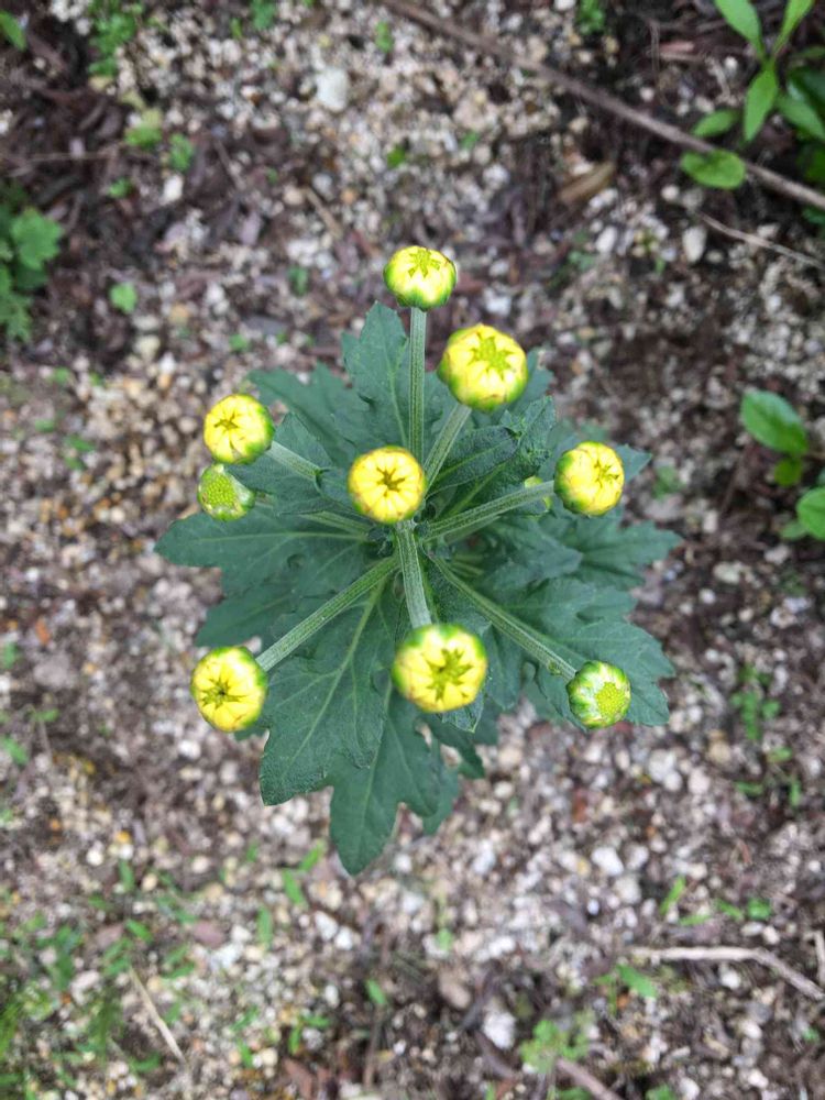 この春植えた菊の花、もうじき咲きそうです。上から見たら可愛い❤️