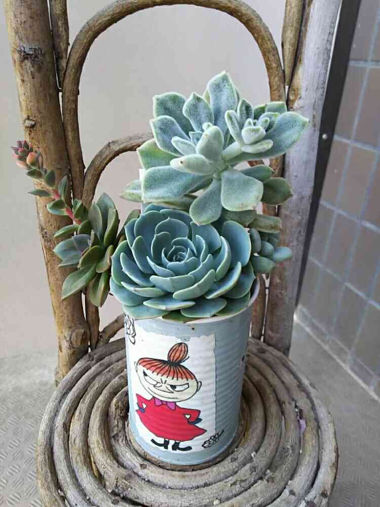 こんな、可愛い缶も有りかな😆で作りましたが、意外と評判良くて多肉と馴染んますね😉👏