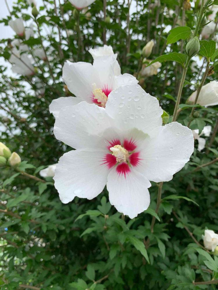 お散歩中に発見!ムクゲの花が咲いていました〜!💖🤍🤍💖