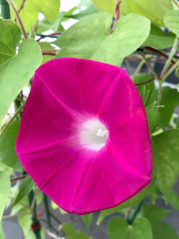 わが家のモーニンググローリー、やっと一輪咲きました。