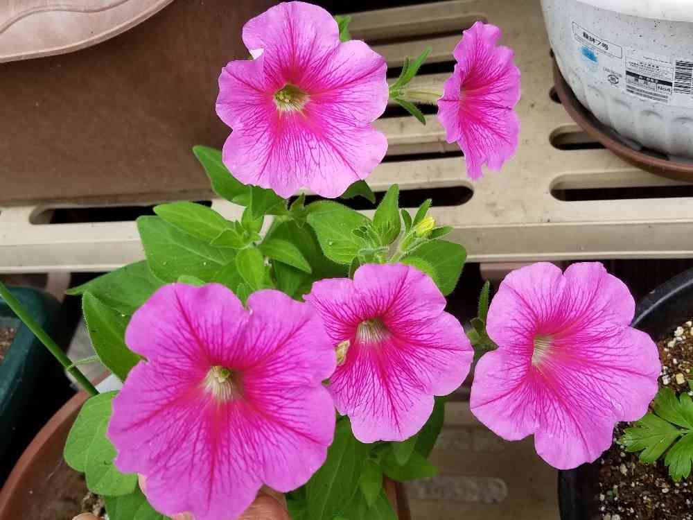 一人恥ずかしがり屋が、あっち向いています🙈今日もペチュニアと私は元気です🌸😄