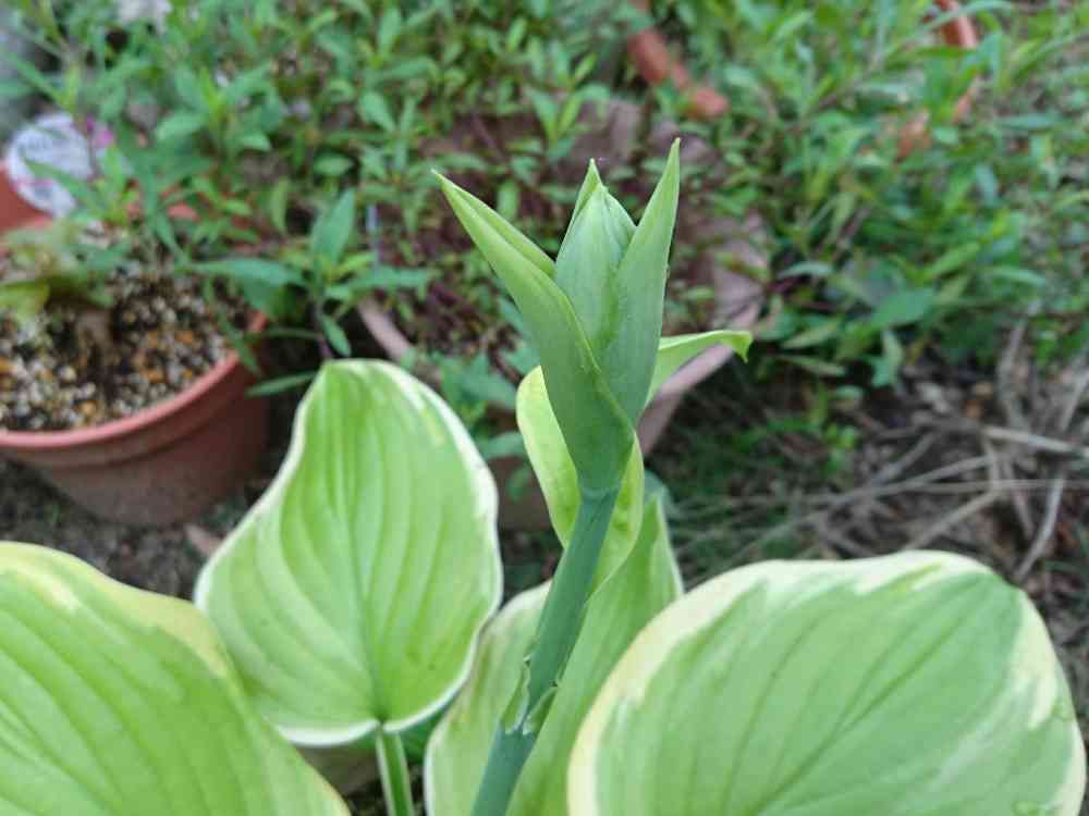 今年お迎えした斑入りのギボウシは蕾が一つ出来咲くのが楽しみです🎶✨