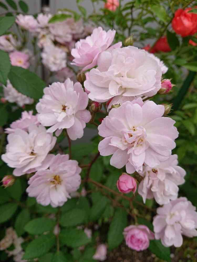 優しいピンクで小さくて寄り添って咲いている。桜のようなミニ薔薇初めて見ました。💓