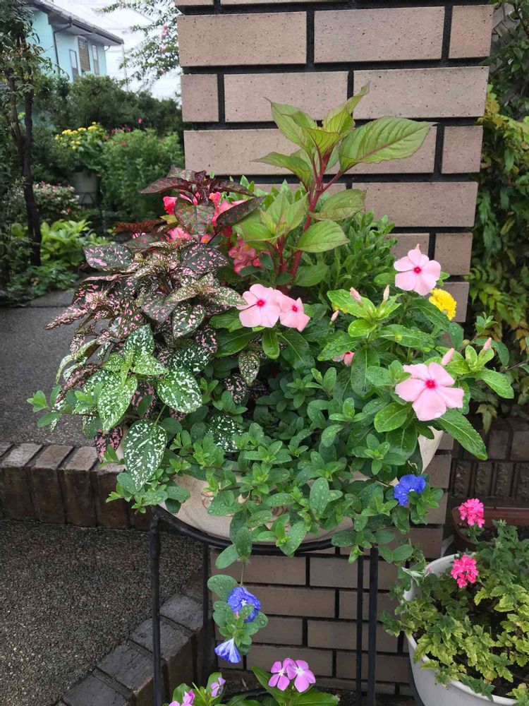 この寄せ植え、ベゴニアはチラッと花だけ見えていて手前の葉は名前が分からず書いてありません😅🙏