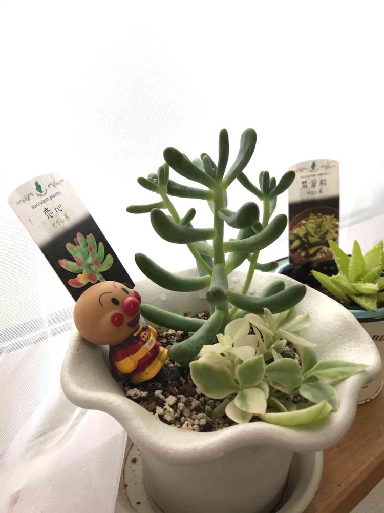 アンパンマンと鉢と植物とのコラボ素敵ですね^_^