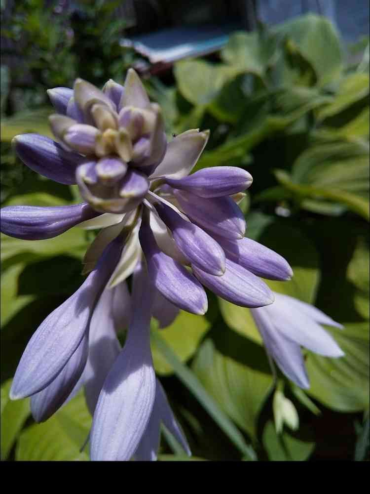 素敵な色のギボウシですね❥︎・•緑をバックに引き立っています。