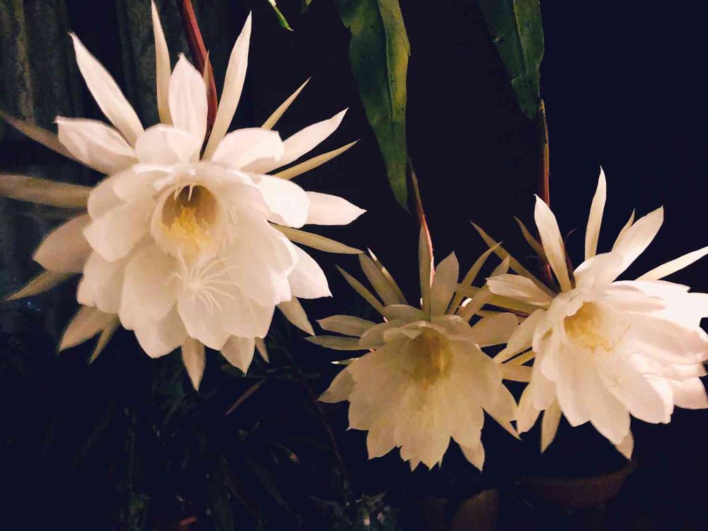 貴重なお花がイッキに開花したのね! とっても綺麗♪ 一夜限りなんてなんだか切ないけど、嬉しい開花♪